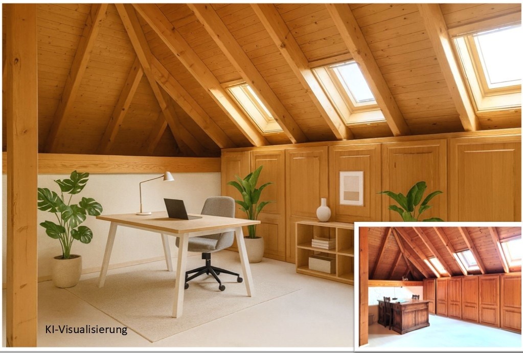 Die Ausstattung besticht durch Hochwertigkeit und Individualität: Natursteinböden mit Fußbodenheizung, mit Echtholz verkleidete Decken und geschmackvolle Details schaffen eine behagliche und zugleich stilvolle Wohnatmosphäre. Das ausgebaute Dachgeschoss lässt sich vielseitig und ganz nach Ihren persönlichen Bedürfnissen nutzen.